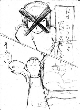 thekiさんが何か描くぞ顔に×印がついた女の子の漫画を